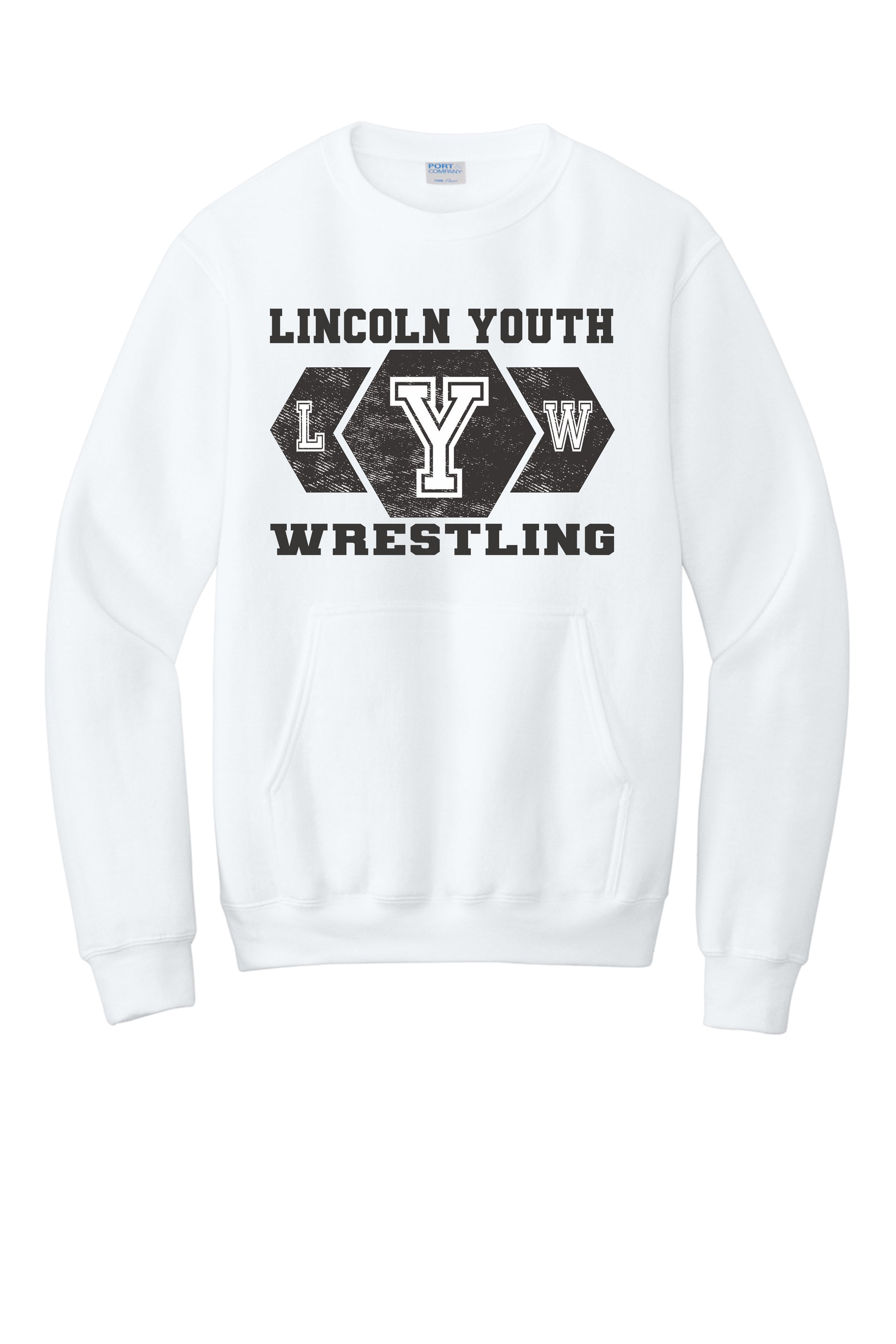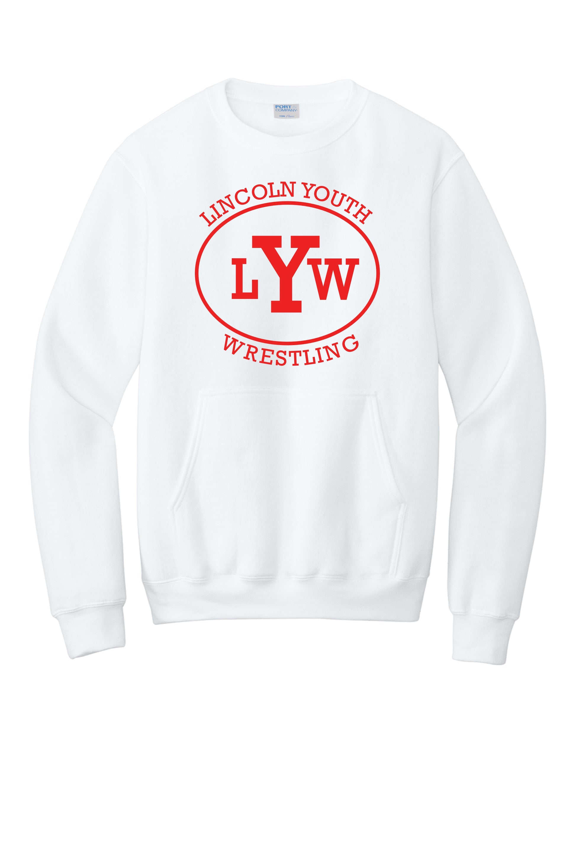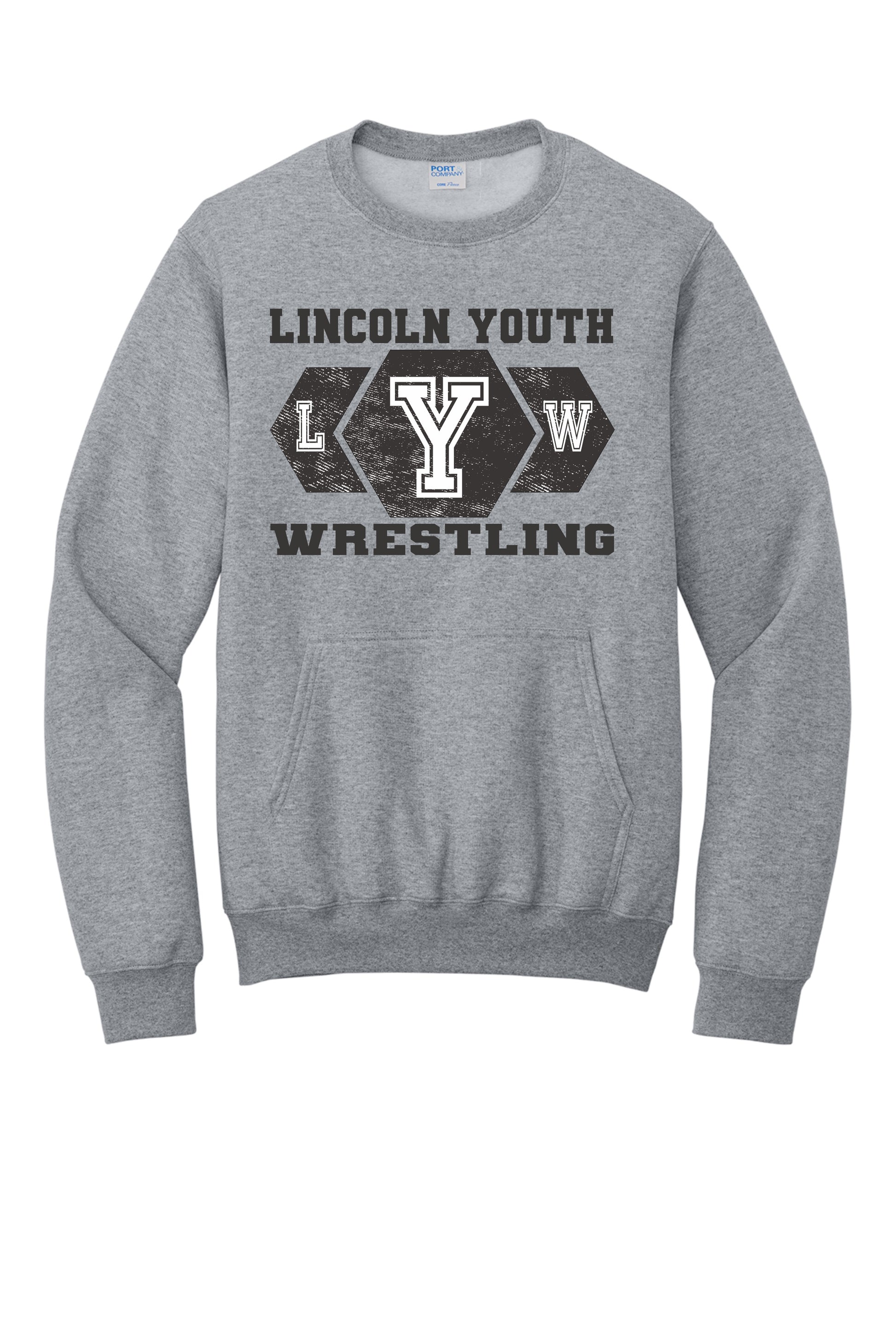 Lincoln Youth Wrestling Port & Co™ Core Fleece Crewneck Pocket Sweatshirt (P.PC78PKT)