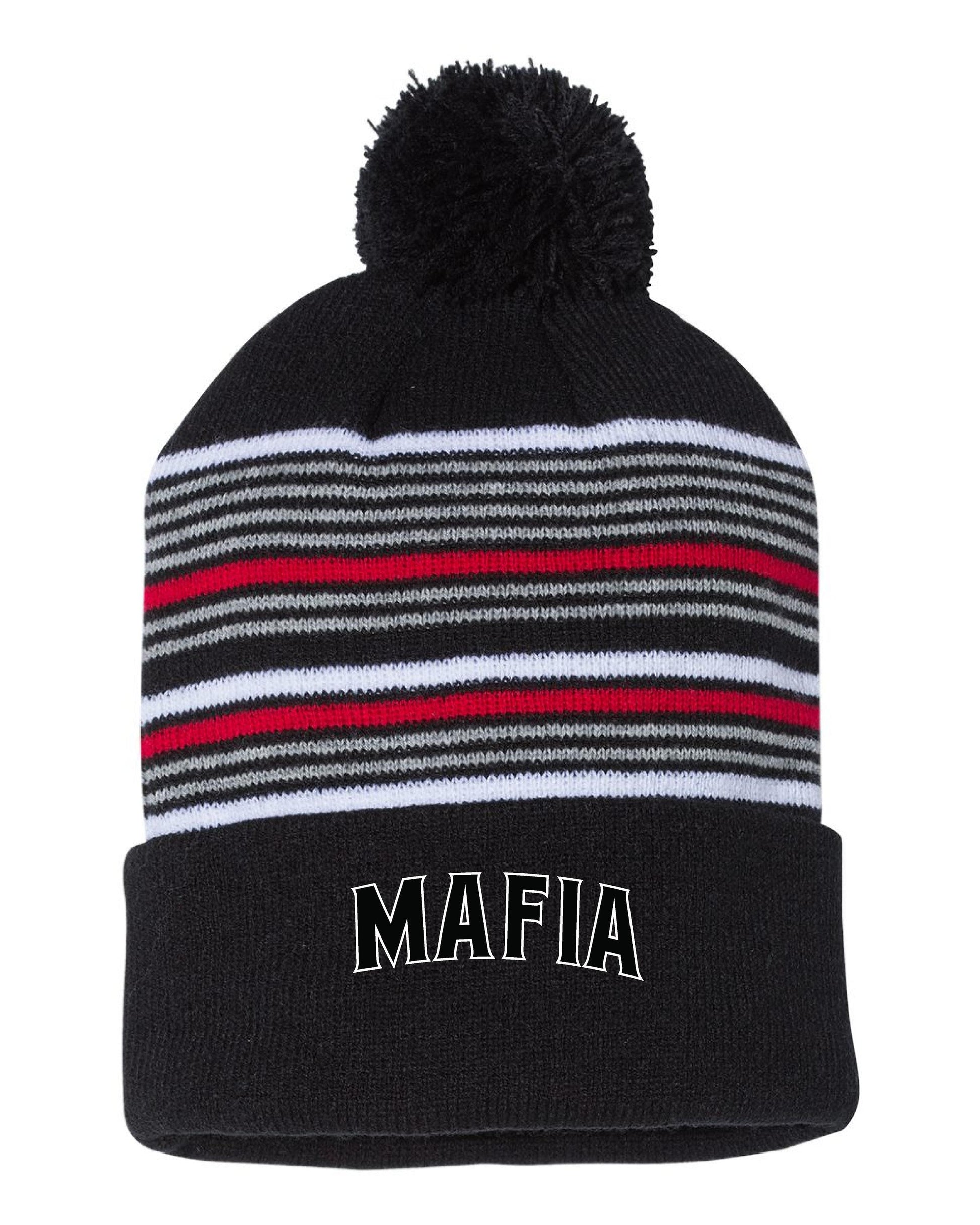 MAFIA BASEBALL/SOFTBALL 12" Striped Pom-Pom Knit Beanie - (E.SP60)